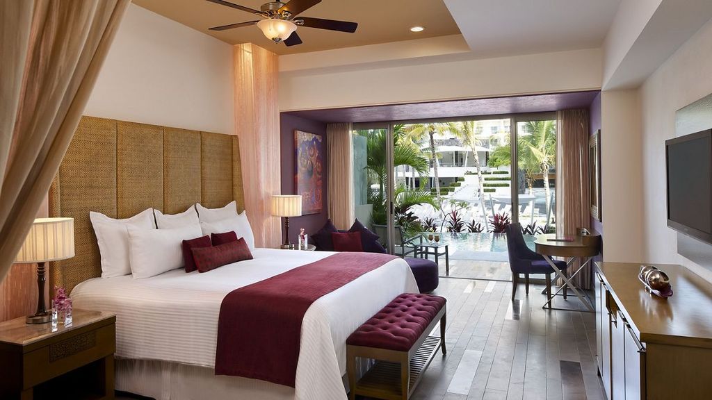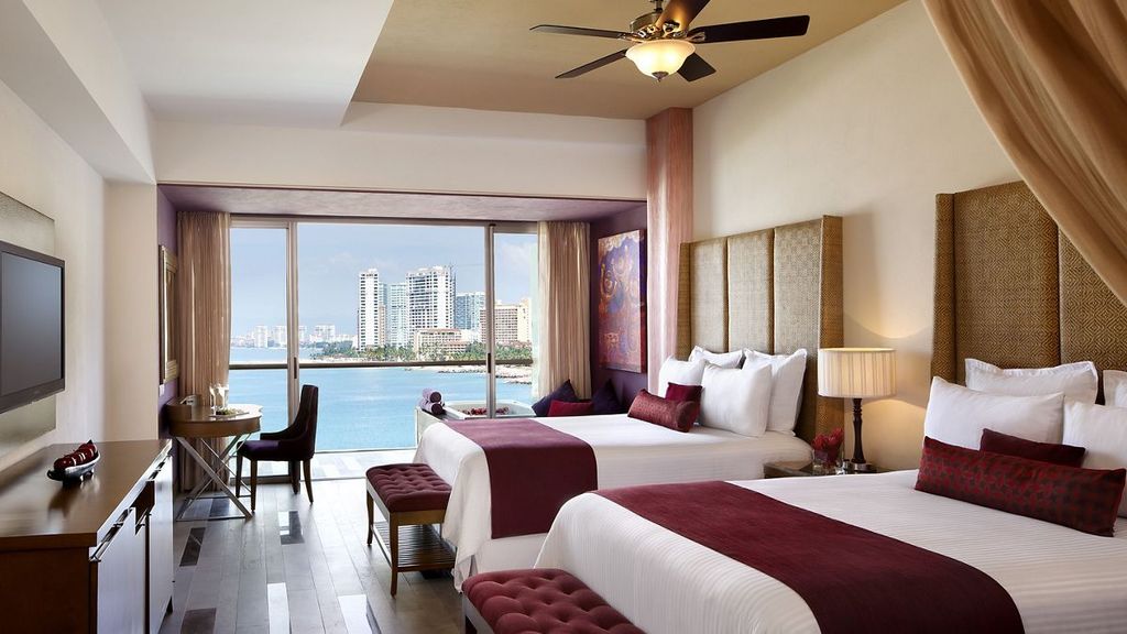Situated on the golden beaches of the Pacific coast within walking distance of the famous El Malecón boardwalk, this vibrant oceanfront AAA Four Diamond resort provides adults 24/7 access to buzzing nightlife, non-stop entertainment and Unlimited-Luxury®. Free flow access to Now Amber Puerto Vallarta next door enhances the luxury experience. The polished rooms offer free Wi-Fi, flat-screen TVs, iPod docks, safes, minibars, and terraces or balconies. Upgraded rooms provide bay views or swim-up pool access. Club rooms come with private lounge access. Suites offer terraces with hot tubs and/or private plunge pools. Green fees at 3 off-site golf courses are included, as are meals and drinks at 8 restaurants and 4 bars. Amenities consist of an infinity pool, a gym, a spa, and a hot tub.